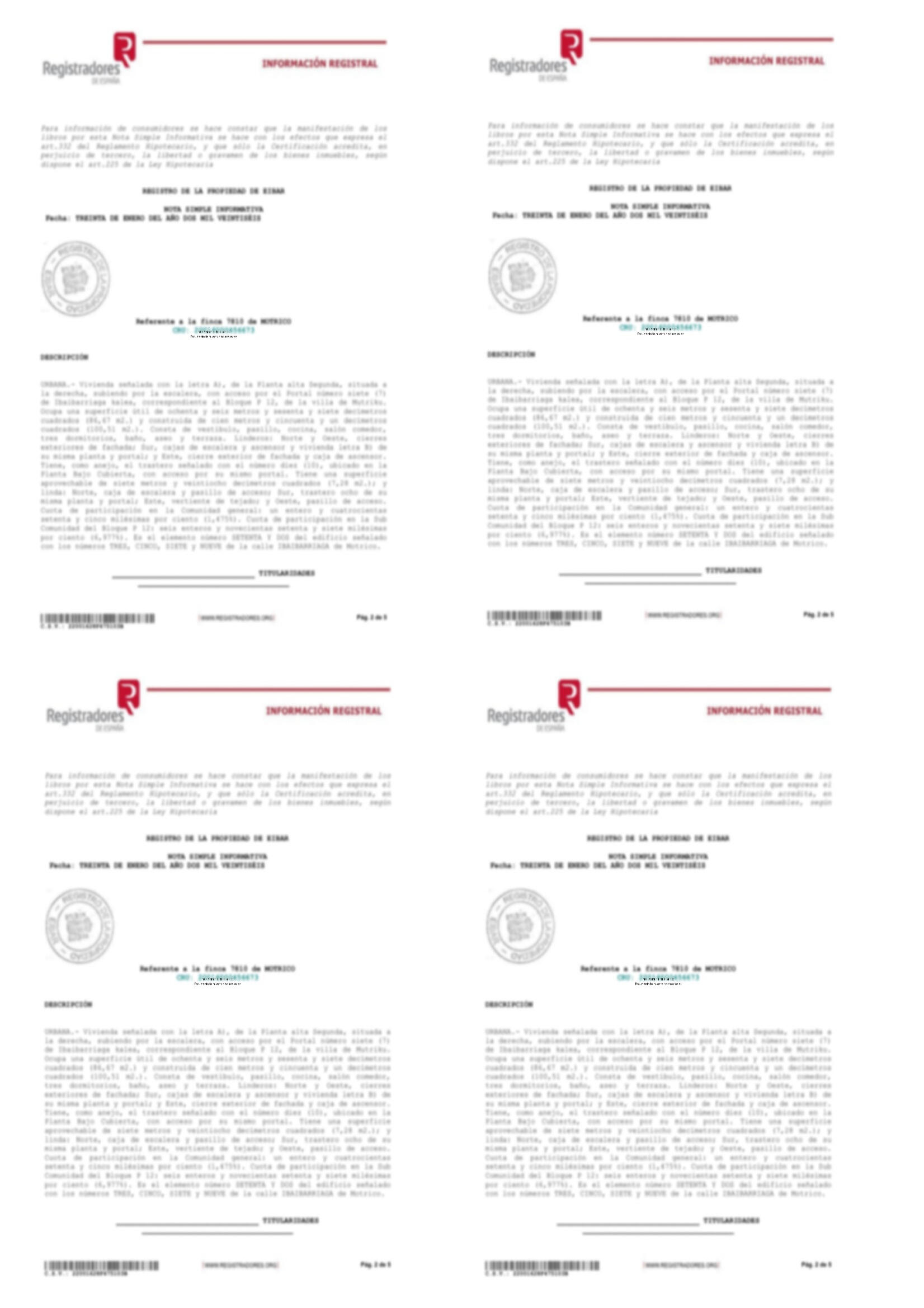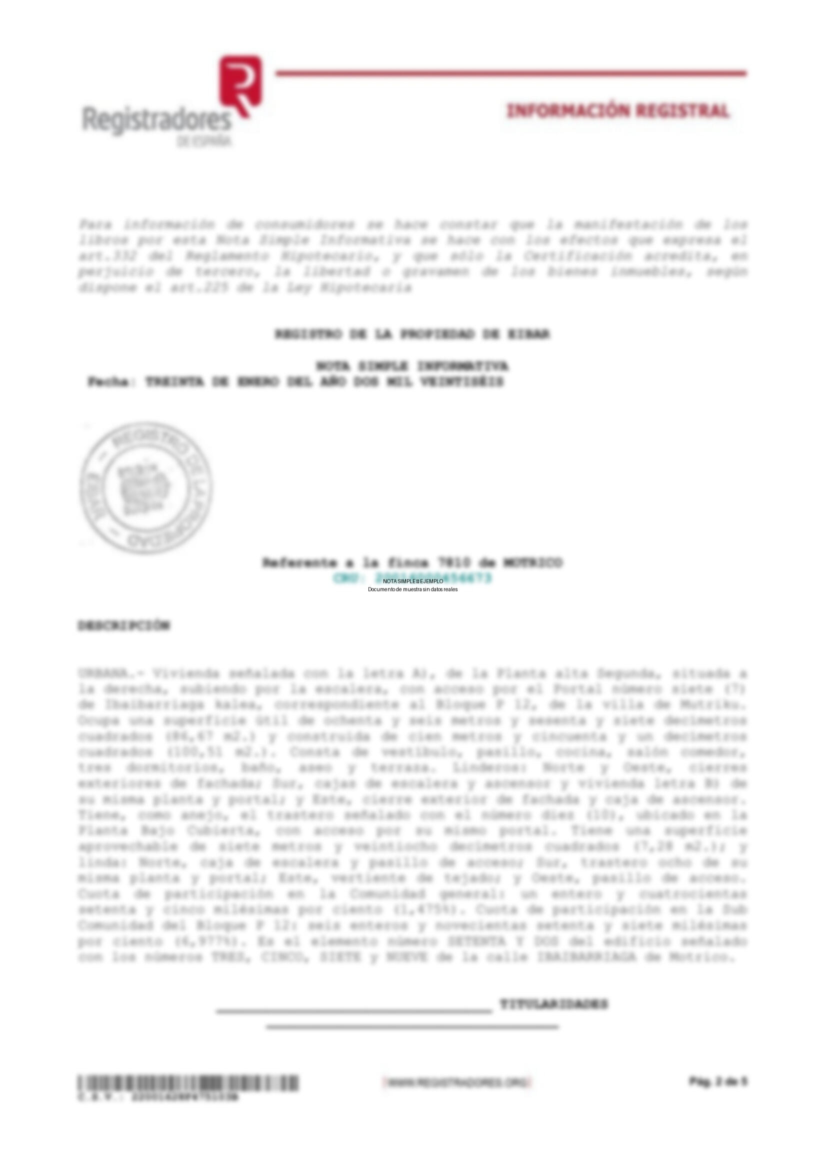 No se garantiza el contenido de la Nota Simple, ya que este depende exclusivamente del Registro de la Propiedad.